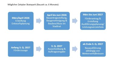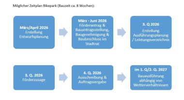Die zum jetzigen Zeitpunkt denkbare Zeitplanung für die Errichtung des Bikeparks sowie des Skateparks: