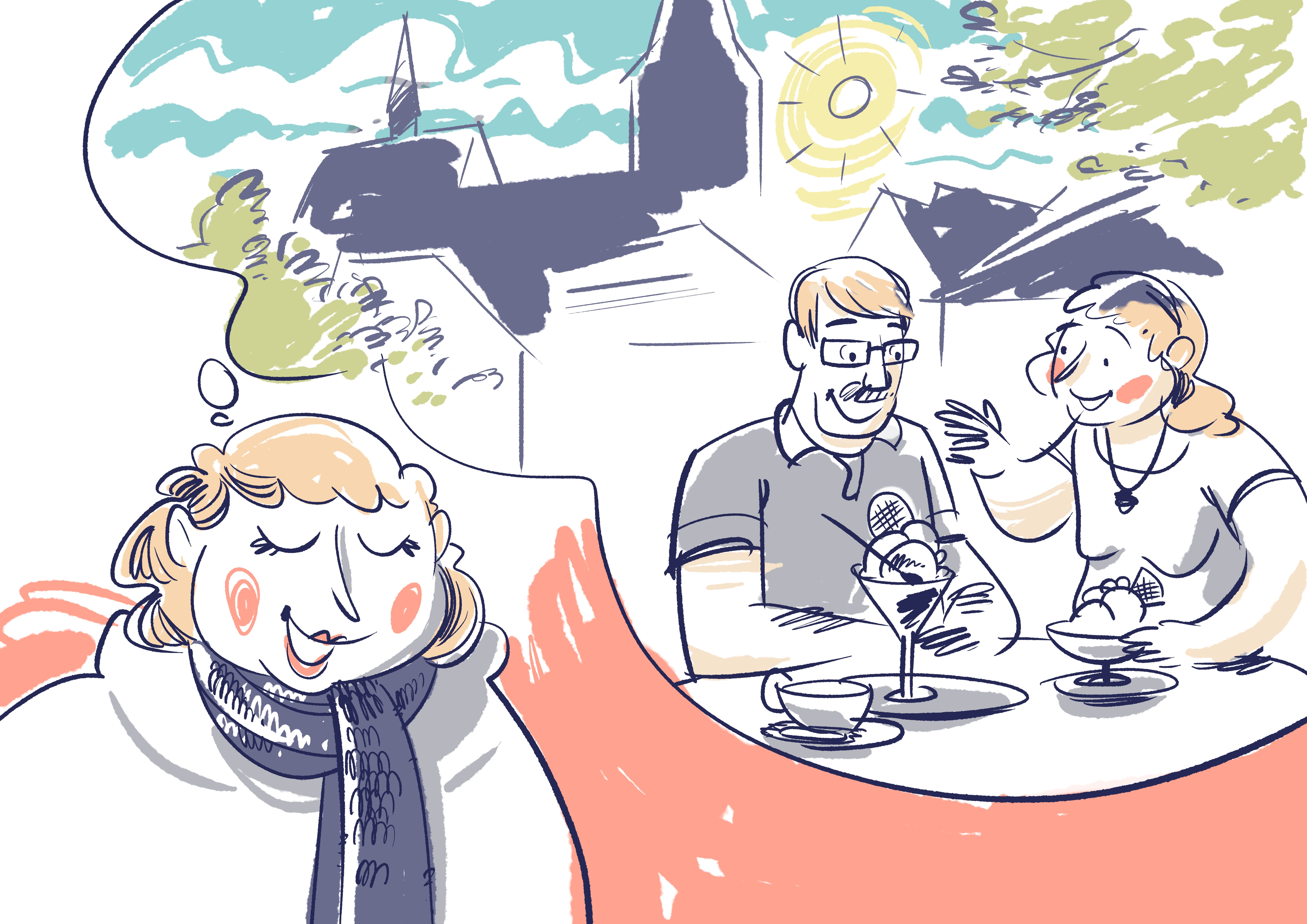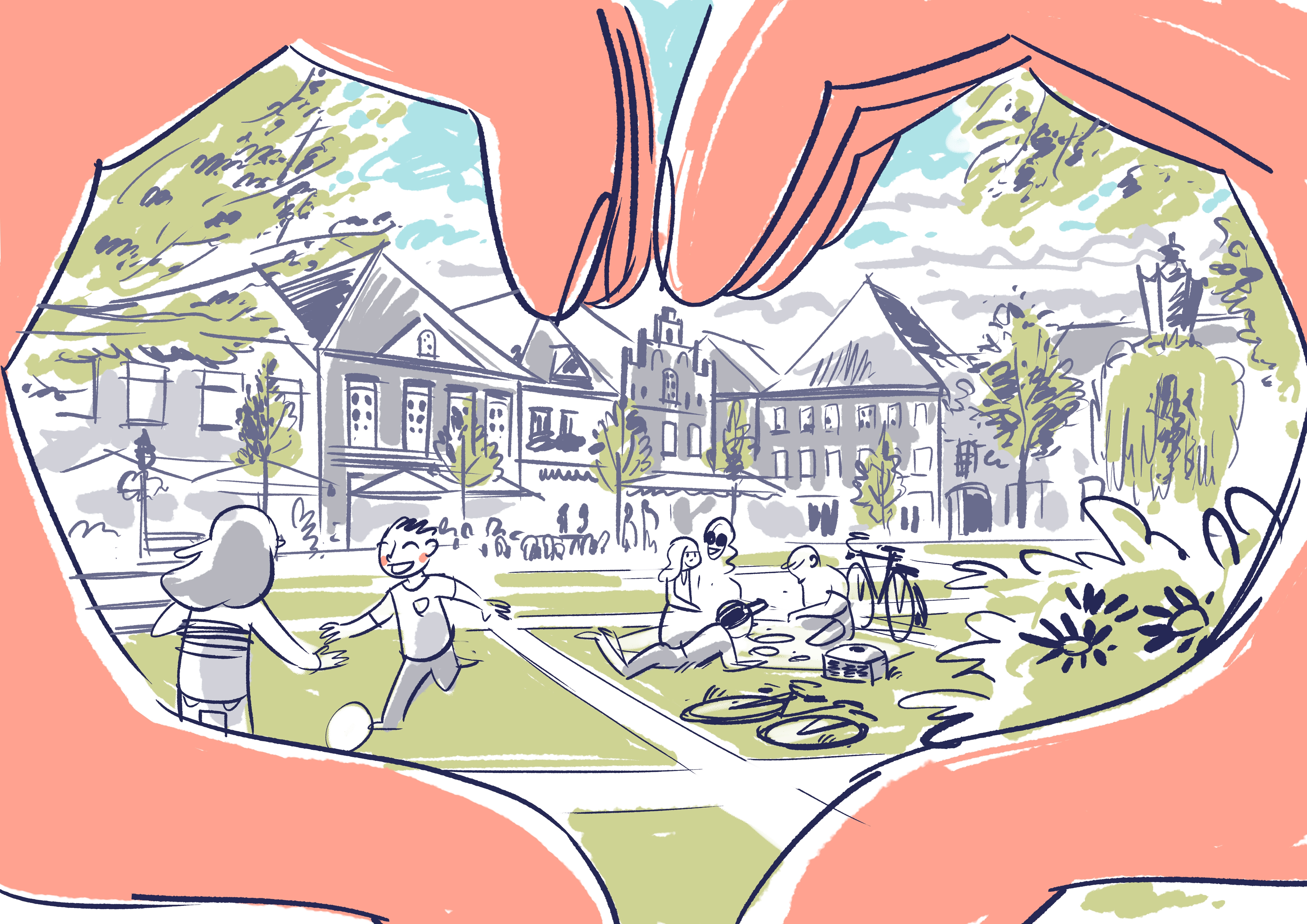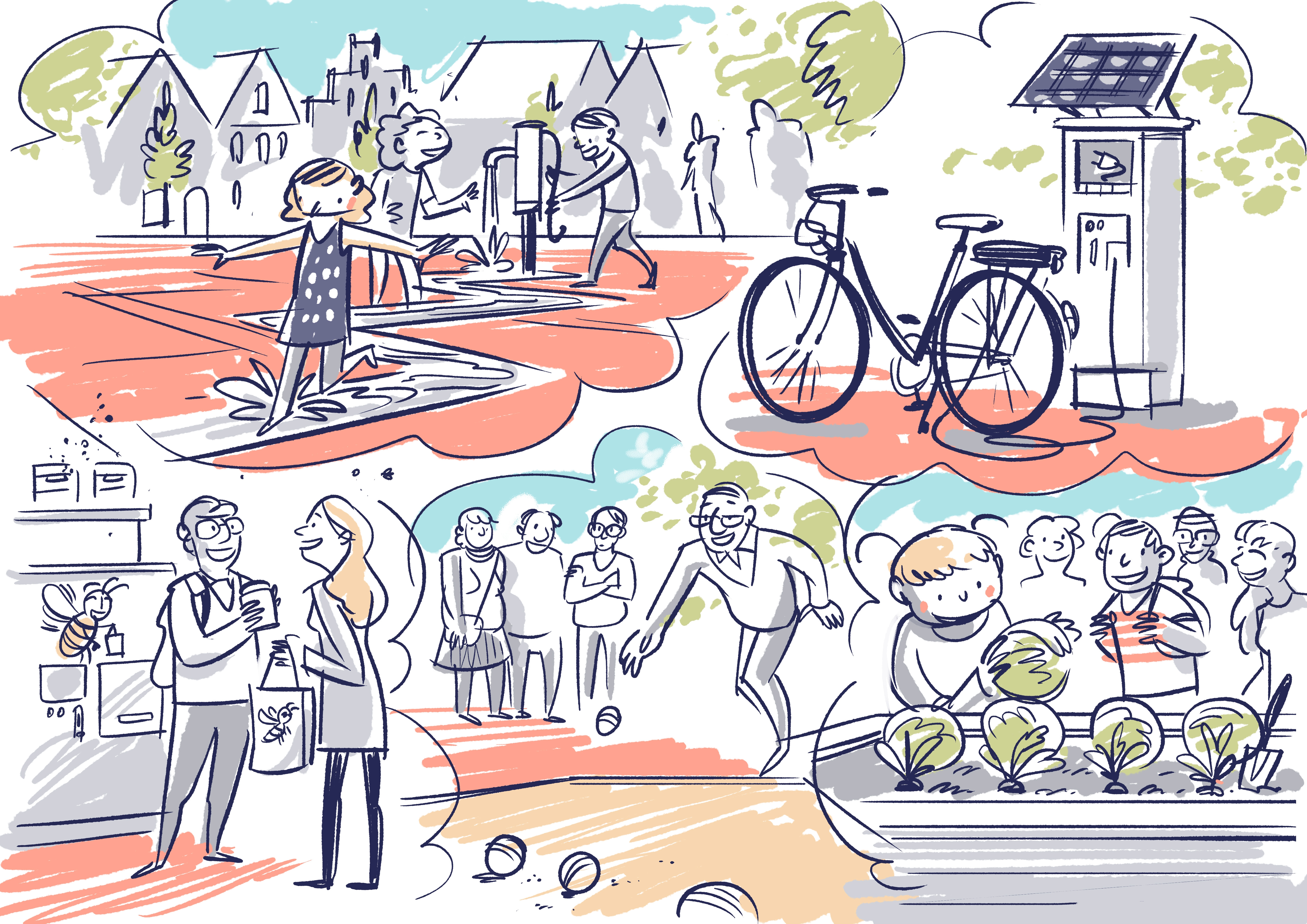 Ein Bestandteil der Online-Befragung war die Frage nach der subjektiven Sicht der Bürgerinnen und Bürger auf „ihren“ Marktplatz. Sie wurden gebeten zu beschreiben, was der Marktplatz ihnen ganz persönlich bedeutet und was er für sie ausmacht. Eine Auswahl aus diesen Beschreibungen wurde dann vom Künstler, Herrn Mantel, zeichnerisch dargestellt.