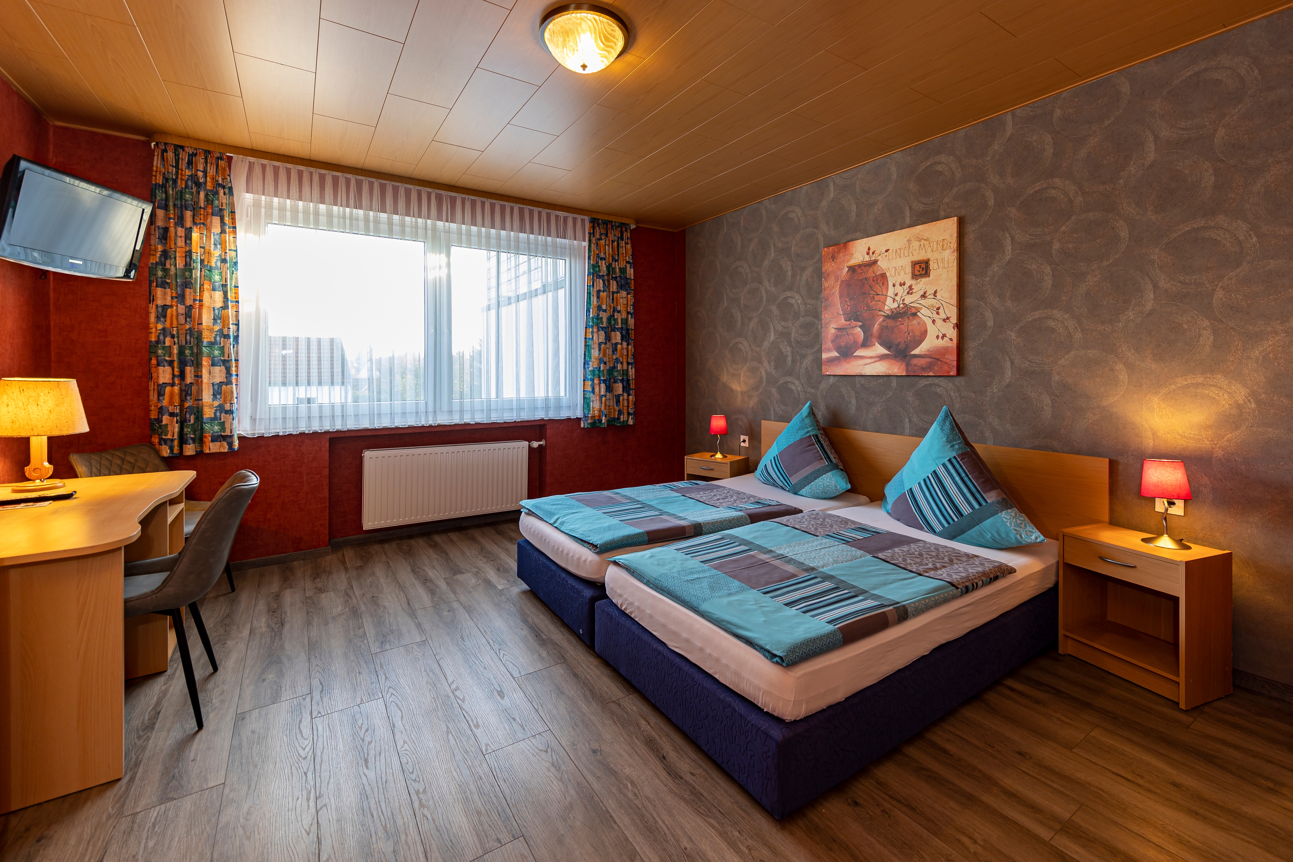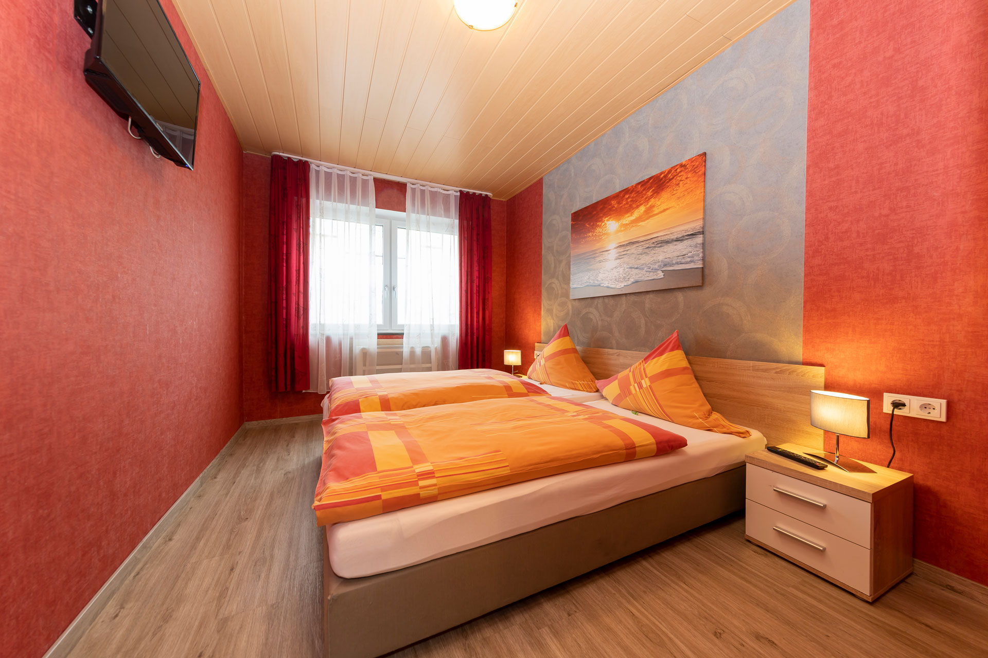 Einzel- oder Doppelbett, Dusche, WC, Klimaanlage, SAT-TV und WLAN