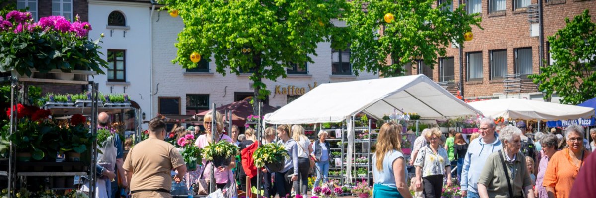 Am letzten Sonntag im April gleicht der Marktplatz einem „Füllhorn“. Blumen in Hülle und Fülle, für Balkon, Terrasse und Garten, warten auf Käufer. Für die Hobbygärtner werden eine Vielzahl von Beet- und Balkonpflanzen, die aus heimischem Anbau sind, präsentiert. Die hohe Qualität und Frische der Pflanzen, kurze Transportwege und ein entsprechendes Preisniveau machen den Frühlings-Blumenmarkt zum Anziehungspunkt für viele Gäste. Natürlich gibt es auch Geschenkideen für den folgenden Muttertag. Beim Frühlings-Blumenmarkt wird in jedem Jahr das Straelener Blumenmädchen gekürt. Sie ist die Repräsentantin für den Gartenbau in und um Straelen.