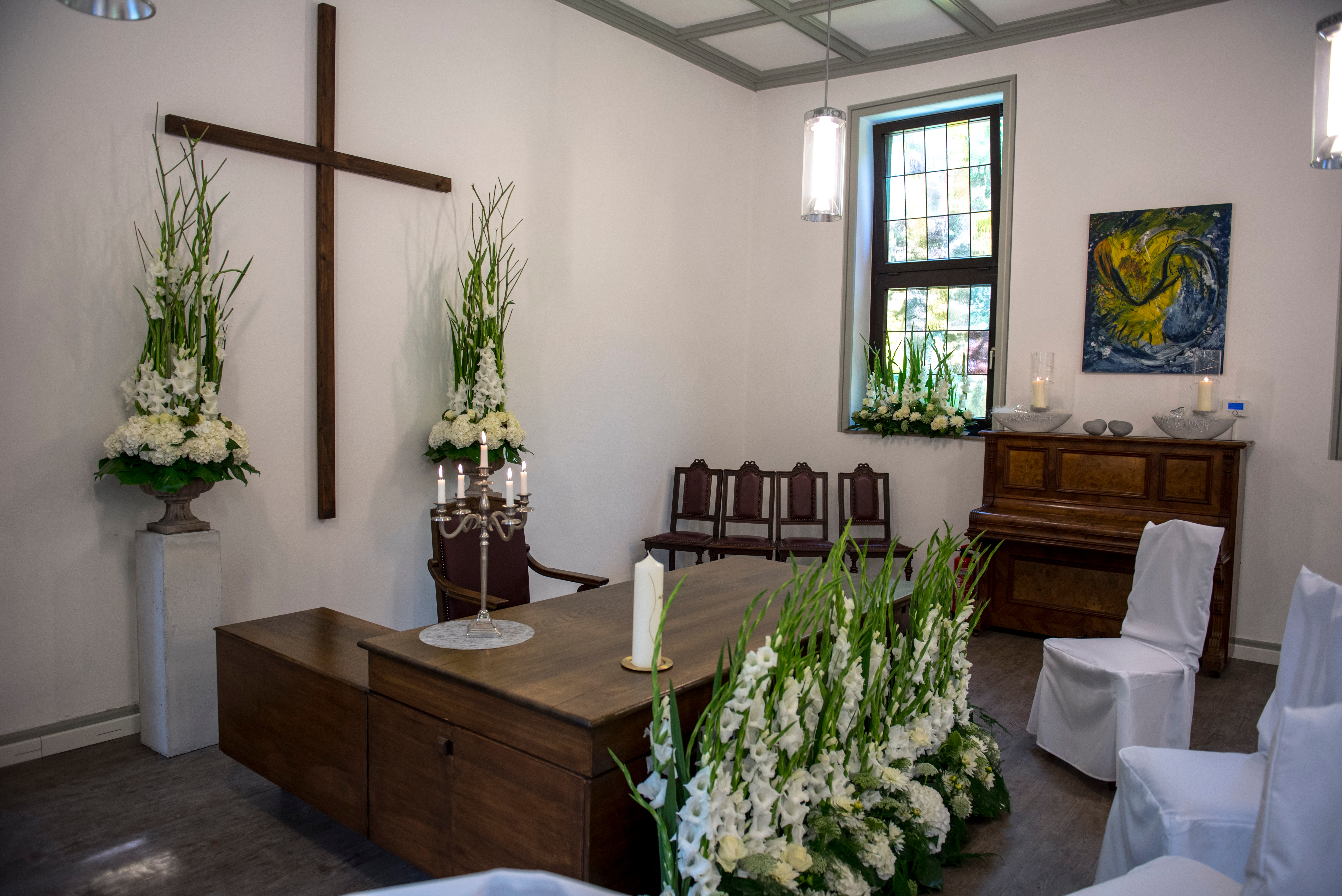 In der Vergangenheit wurden hier bereits standesamtliche Eheschließungen mit etwa 100 Gästen durchgeführt. Aber auch im kleinen Familienkreis findet die Kapelle immer größere Beliebtheit. Als Sitzgelegenheit für die Gäste stehen 11 Bänke zur Verfügung. Die Dekoration auf den Fensterbänken und im Raum sorgt dafür, dass Sie den schönsten Tag im Leben nicht so schnell vergessen. Bei dem vorhandenen Klavier handelt es sich allerdings um ein reines Dekorationsobjekt. Zudem besteht für jedes Paar die Möglichkeit, durch die Kapelle durch eigenen Blumenschmuck (zum Beispiel an den Bänken) individuell zu gestalten.
