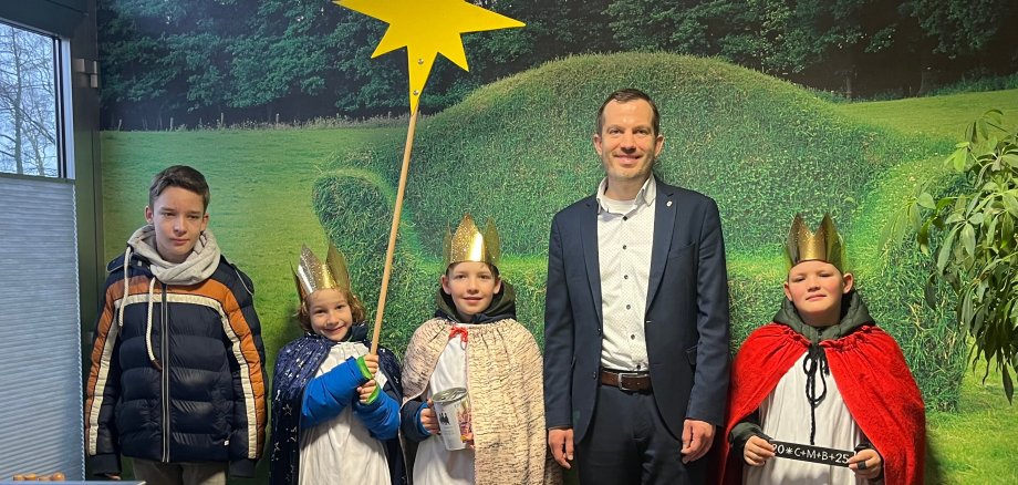 Bürgermeister Bernd Kuse hat am Dreikönigstag die Sternsinger im Straelener Rathaus empfangen. Traditionell brachten Kinder in den Gewändern der Heiligen Drei Könige den Segensspruch „C+M+B - Christus mansionem benedicat - Christus segne dieses Haus“ auch in diesem Jahr in die Stadtverwaltung und sammelten Spenden wie in vielen anderen Häusern in Straelen.