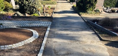 Die bestehenden Asphaltflächen sollen durch eine Pflasterfläche ersetzt werden. Gleichzeitig werden Akcodrän Rinnen über die gesamte Gehwegbreite hergestellt, um das Niederschlagswasser aufzunehmen. Durch die Umsetzung dieser Maßnahme werden wiederkehrende Reparaturarbeiten vermieden und künftige Überflutungen der Grabstätten entlang der Hauptwege verhindert.
