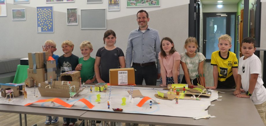 Im Fokus des Projekts standen die Themen Kinderrechte und Demokratie, die die Kinder während der gesamten Veranstaltung begleiteten und in ihre Ideen einfließen ließen. Die jungen Teilnehmerinnen und Teilnehmer entwarfen eine fantasievolle Stadt, die ihre Vorstellungen und Bedürfnisse widerspiegelt. Besonderer Höhepunkt war der Besuch von Bürgermeister Bernd Kuse: „Sehr interessant, unsere Stadt aus der Perspektive der Kinder zu sehen. Danke an das Team und vor allem an die teilnehmenden Kinder für das spannende Projekt!“